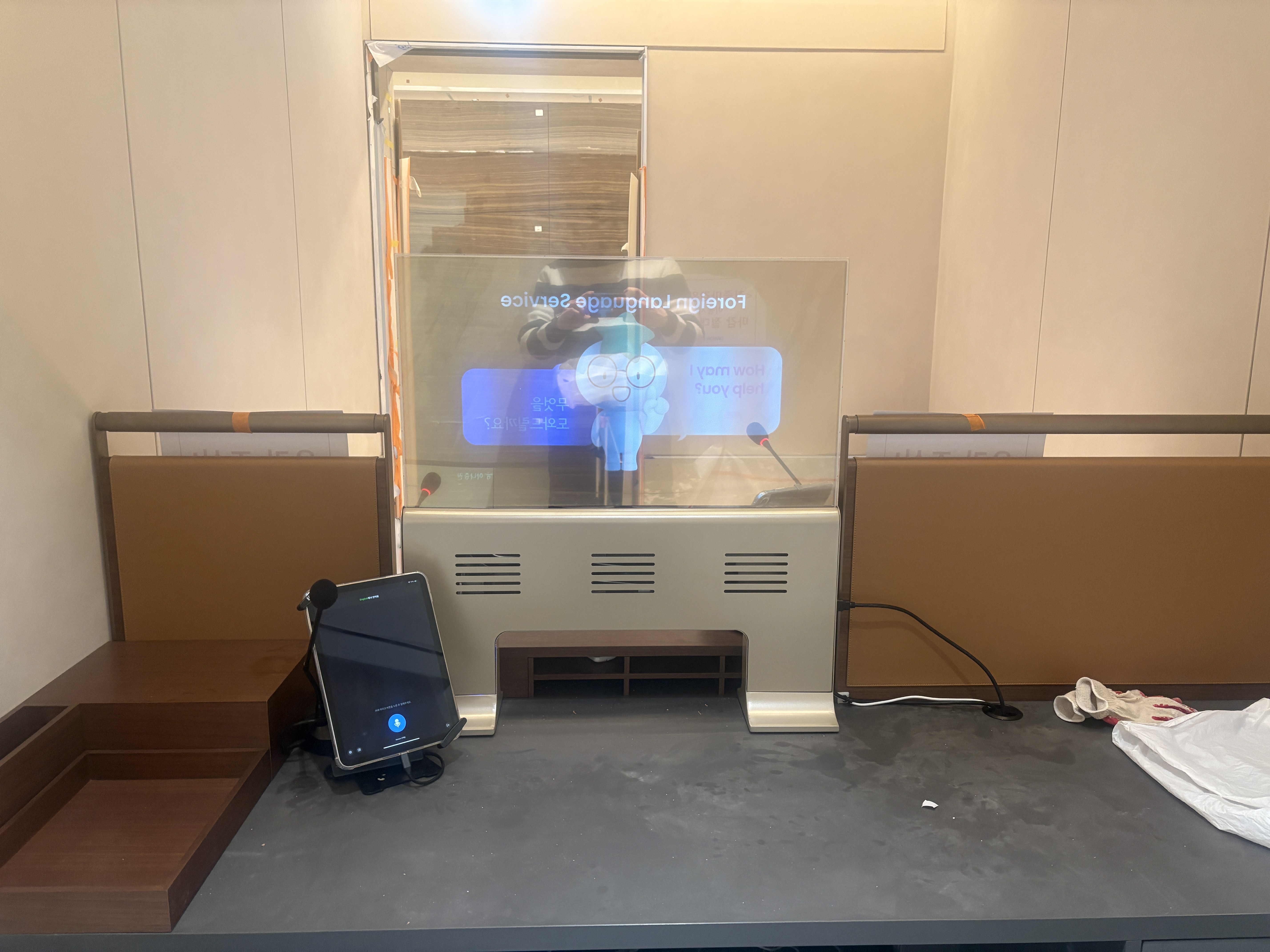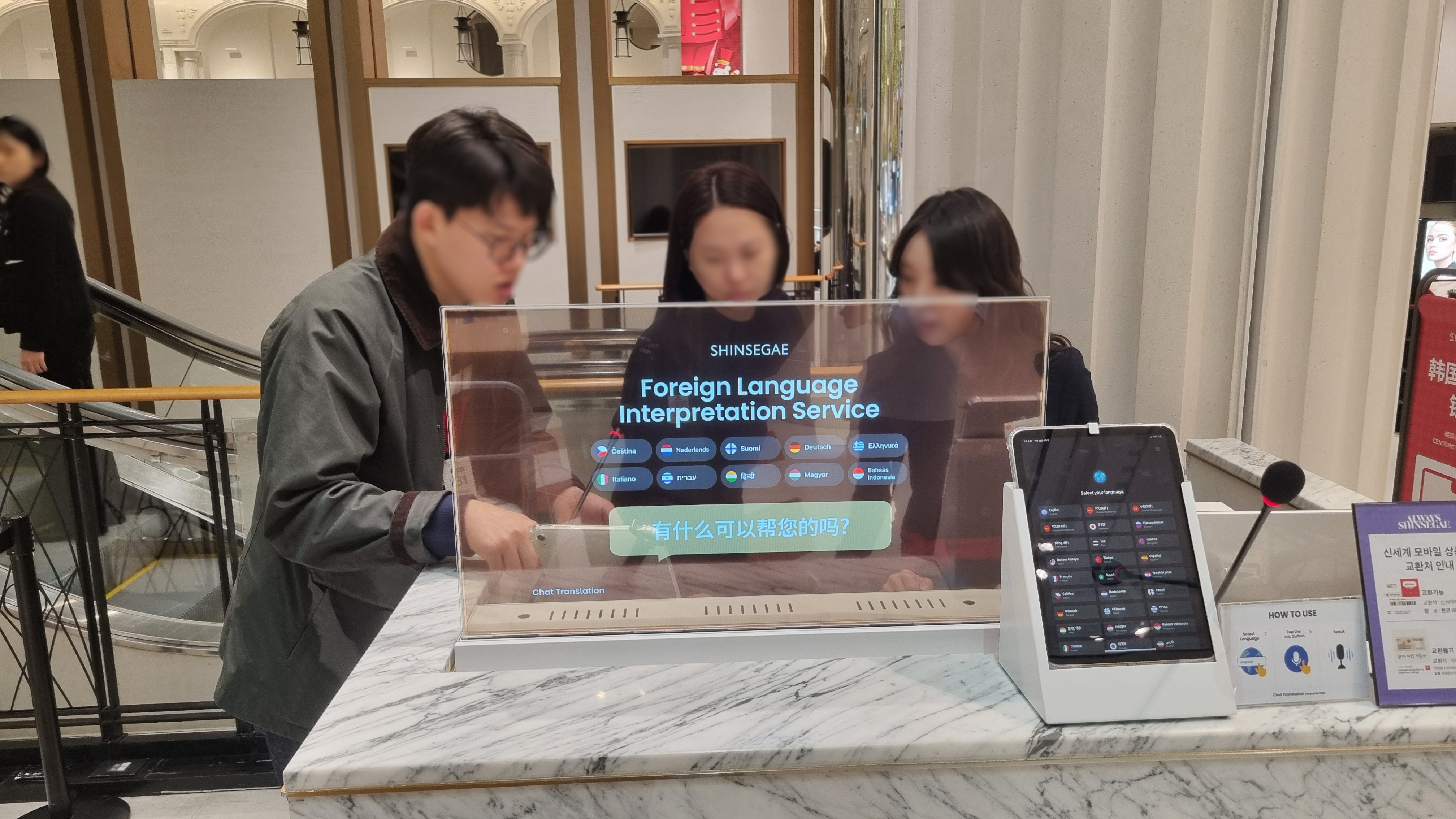 << 투명OLED 동시번역솔루션(AI-RTT) 설계제작설치납품/ 하나증권, 신세계백화점 강남점 >>