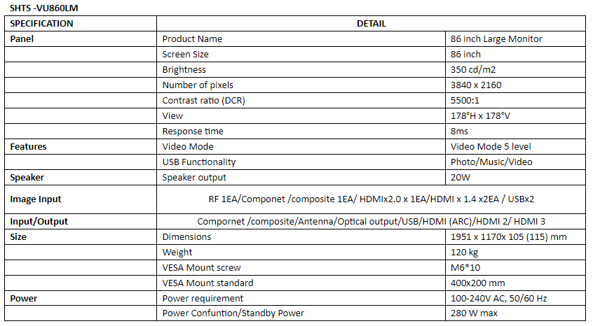 [86-inch UHD 4K monitor SHTS-VU860LM]