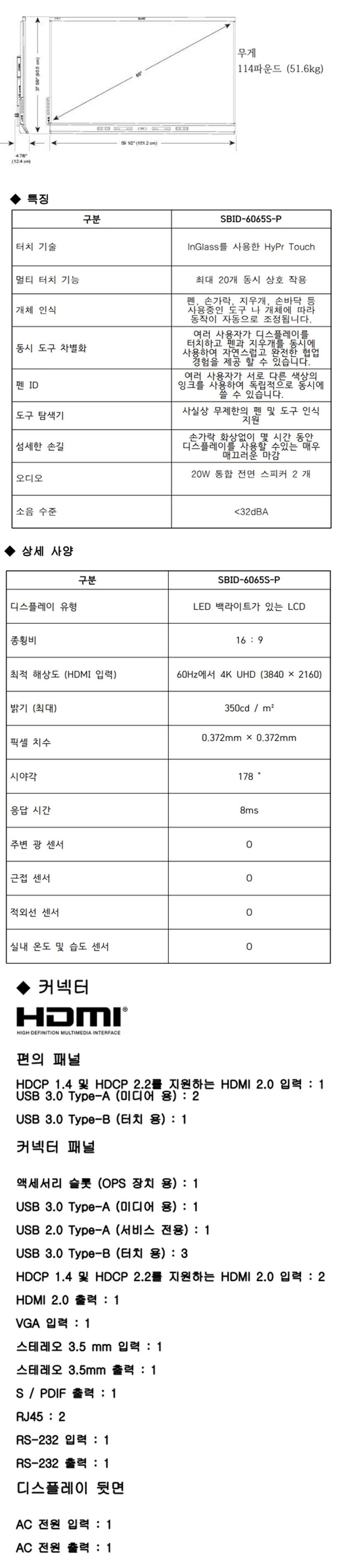 [Sale][65 inch UHD(4K) Interactive whiteboard SBID-6065TM]