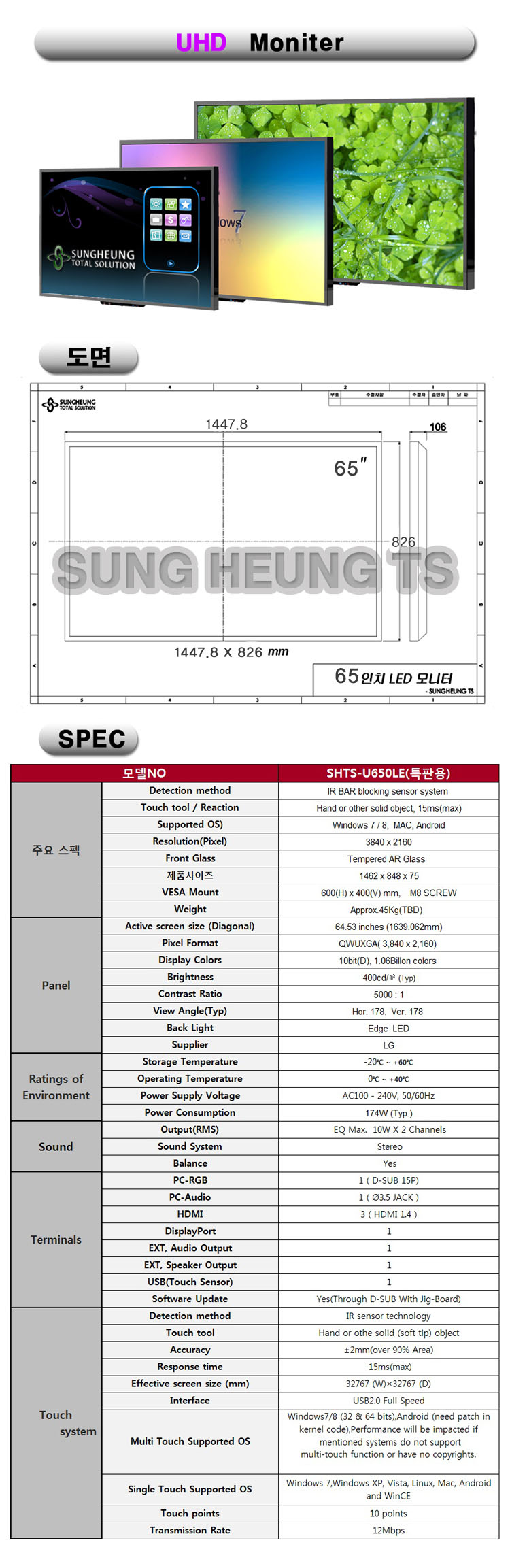 [대여][65인치 UHD 대형 터치모니터 SHTS-U650TM]