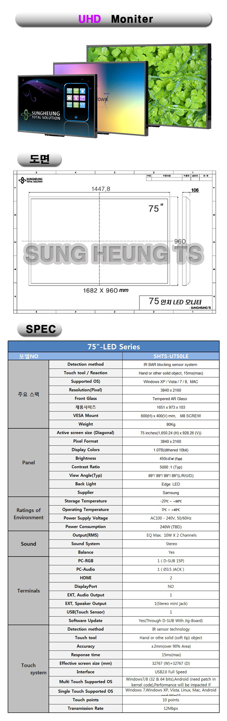 [대여][75인치 UHD 대형 터치모니터 SHTS-U750TM]