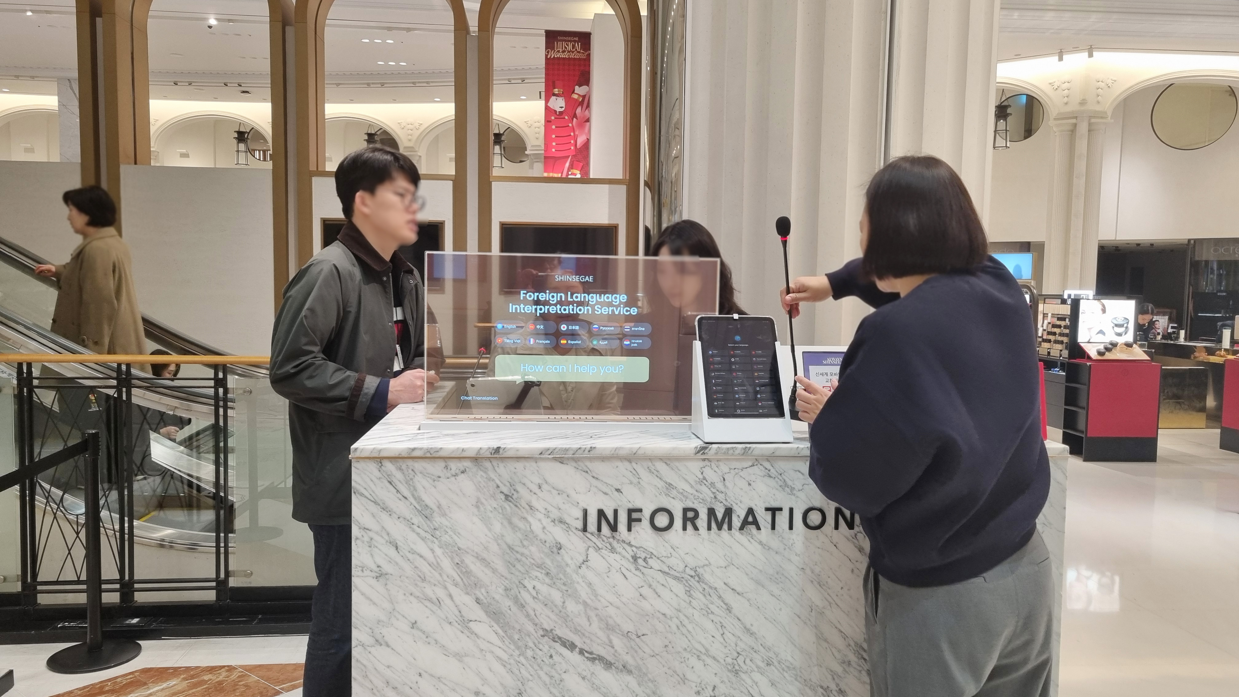 << 투명OLED 동시번역솔루션(AI-RTT) 설계제작설치납품/ 하나증권, 신세계백화점 강남점 >>