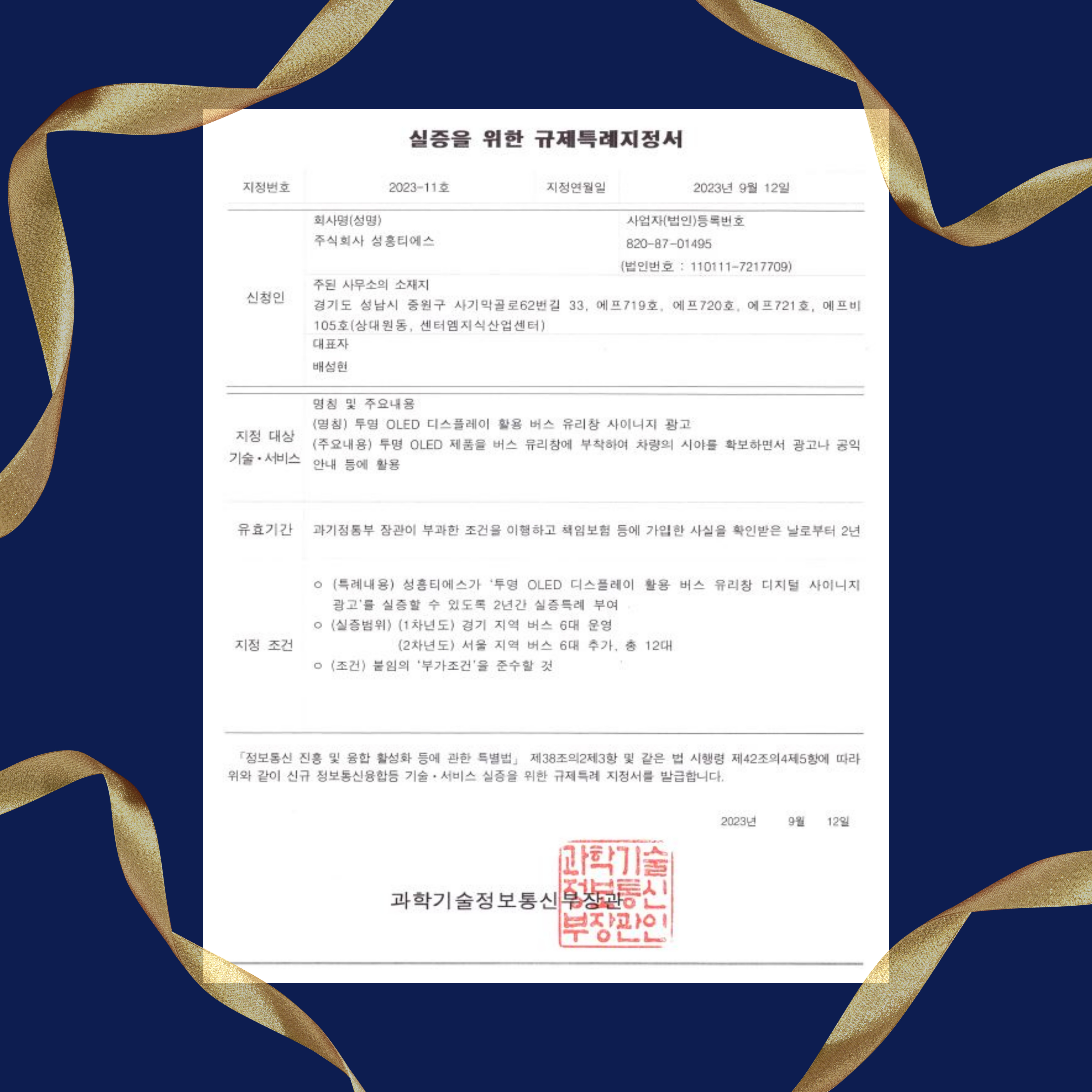 [실증특례승인 - 투명 OLED 디스플레이 활용 버스 유리창 사이니지 광고]